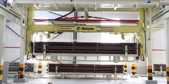 加氣板材經(jīng)過蒸壓釜,坯體獲得最終的強(qiáng)度和性能。出釜后的產(chǎn)品,通過東岳最新研發(fā)的掰板打包系統(tǒng),不但提高產(chǎn)品合格率同時(shí)解決了砌塊、板材同時(shí)分離的難題。