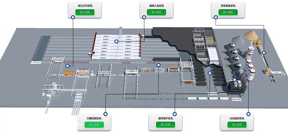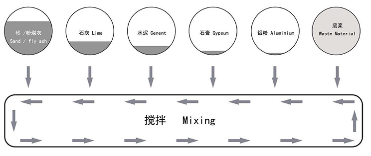 料漿、膠結(jié)料、石膏和鋁粉都分別通過相應(yīng)自動(dòng)計(jì)量稱計(jì)量,后在攪拌機(jī)內(nèi)高速攪拌,澆注到模箱后進(jìn)行氣泡梳理。整個(gè)體系由 PLC 系統(tǒng)進(jìn)行自動(dòng)控制,保證工序的精確和高效。