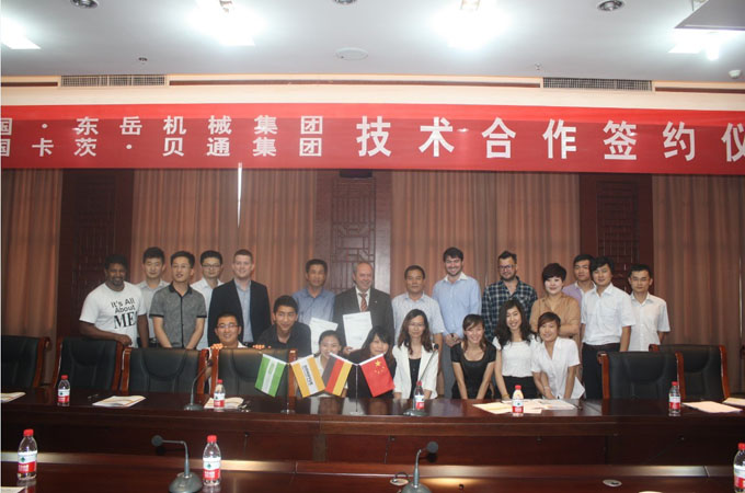 6月17日,在沂南縣智圣湯泉舉行中國東岳機械集團與德國卡茨·貝通集團技術合作簽約儀式,標志這東岳機械集團引進德國加氣混凝土設備技術取得實質(zhì)性進展。出席此次加氣混凝土設備技術合作簽約儀式的領導有臨沂市人大常委會副主任馮安、市政府副市長馬崑、市政協(xié)副主席劉繼雙,縣領導劉淑秀、鞠艷峰、黃寶傳、吳昌力、唐音波、葛繼勇、王富余、劉振奎、張德新、蔣學華、王景良出席簽約儀式。